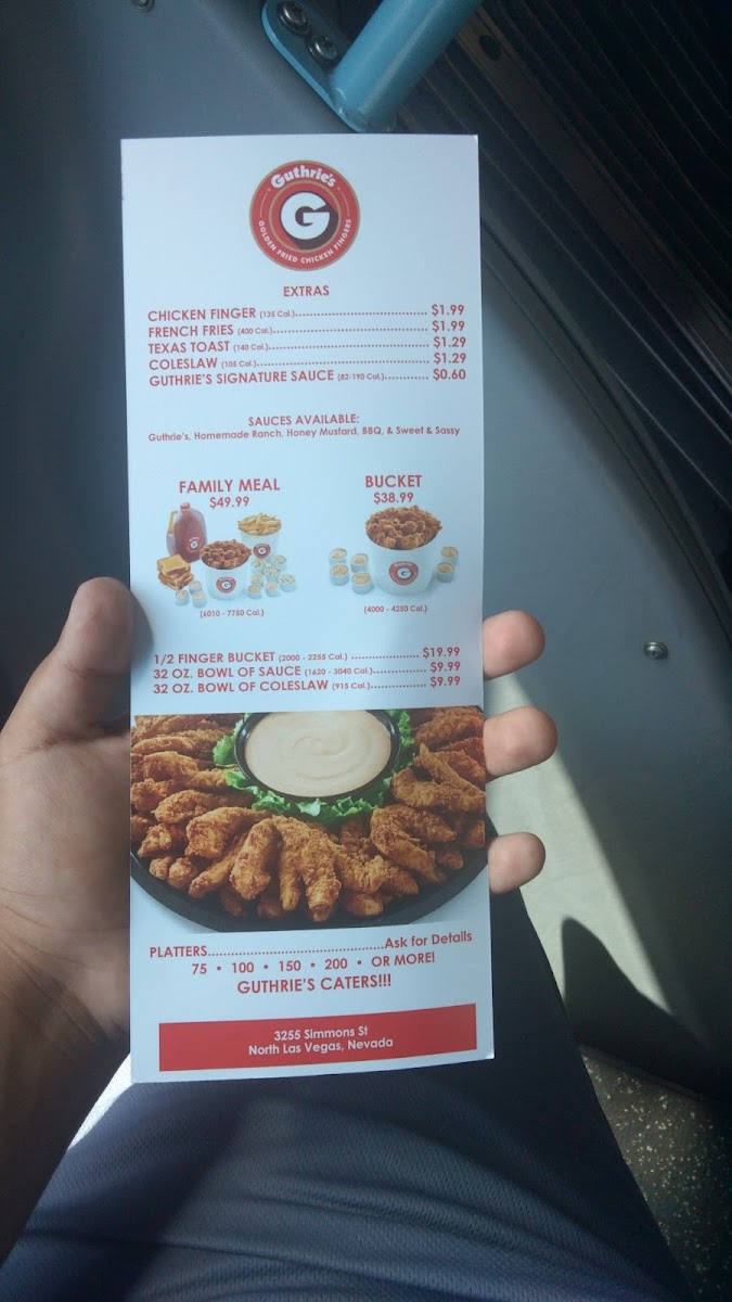 Welcome to Guthrie's Golden Fried Chicken Fingers, a savory haven for chicken tenders enthusiasts located at 3255 Simmons St, North Las Vegas, NV. This newcomer showcases mouthwatering fried chicken fingers that rival established brands, boasting a remarkable flavor profile. Customers rave about the tender, juicy white meat, perfectly seasoned to deliver a delightful crunch with every bite.